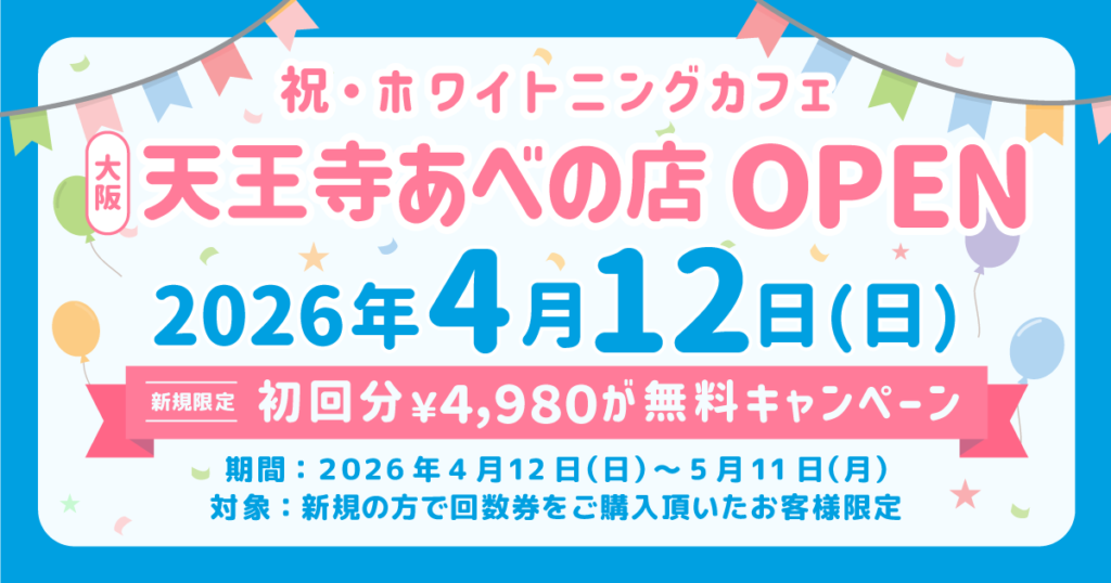 30分で白さ実感、しみない、痛くないホワイトニングを提供する「WhiteningCafe(ホワイトニングカフェ)」が大阪市阿倍野区に新規オープンします!